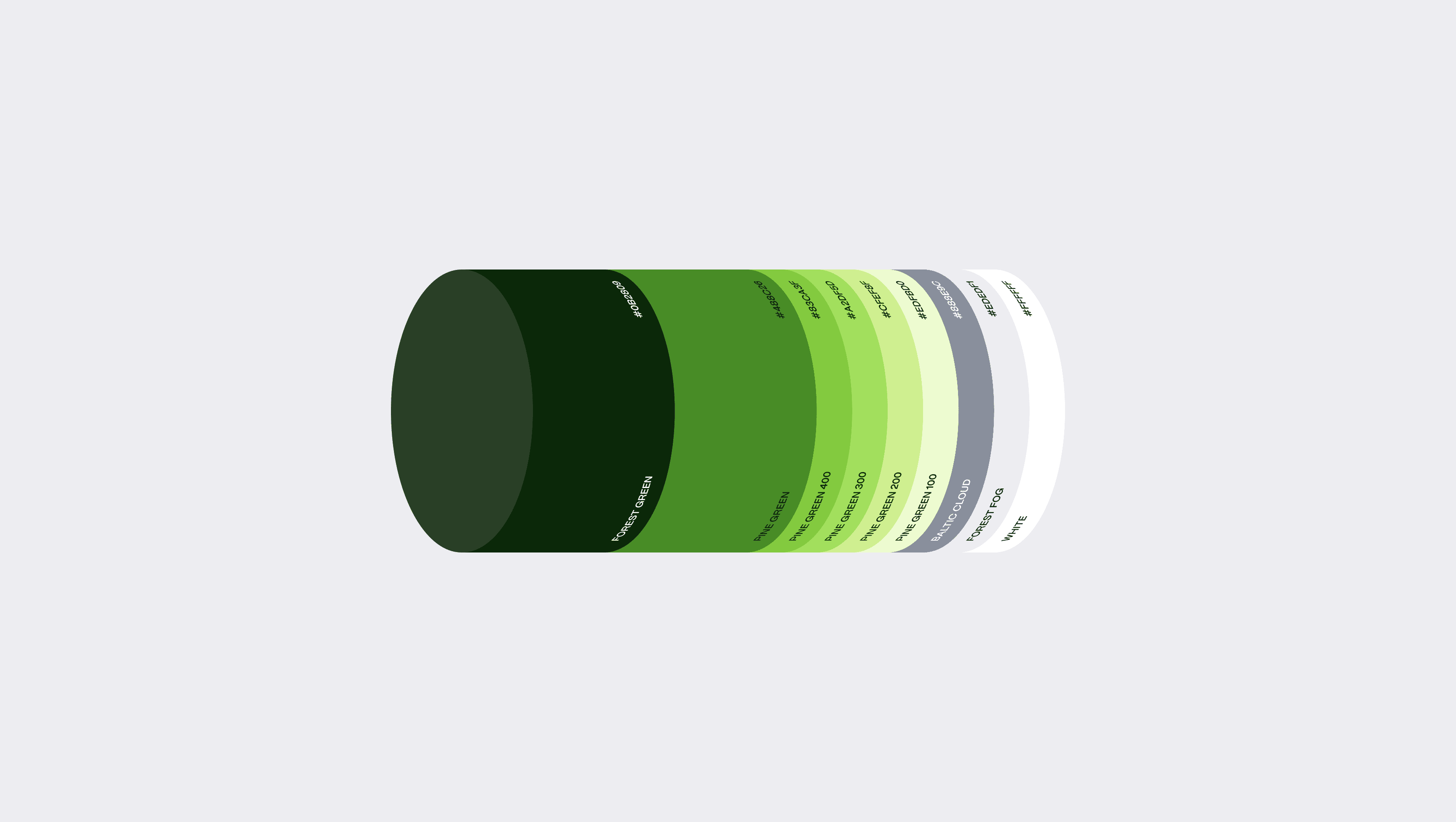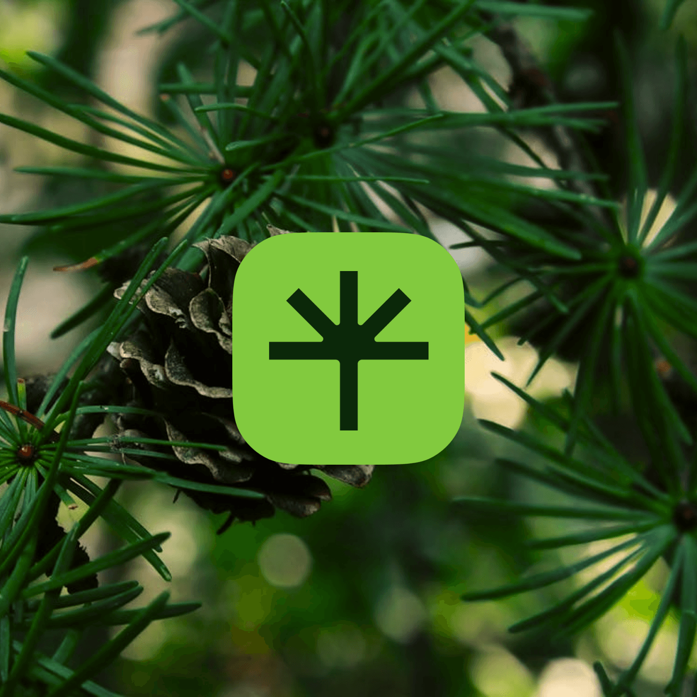 We designed a core symbol based on a pine-needle branch, that also subtly hints at a pie chart and measured value, and paired it with pine-inspired greens, bark browns and soft neutrals to create a calm visual language that connects the forest with analytics.