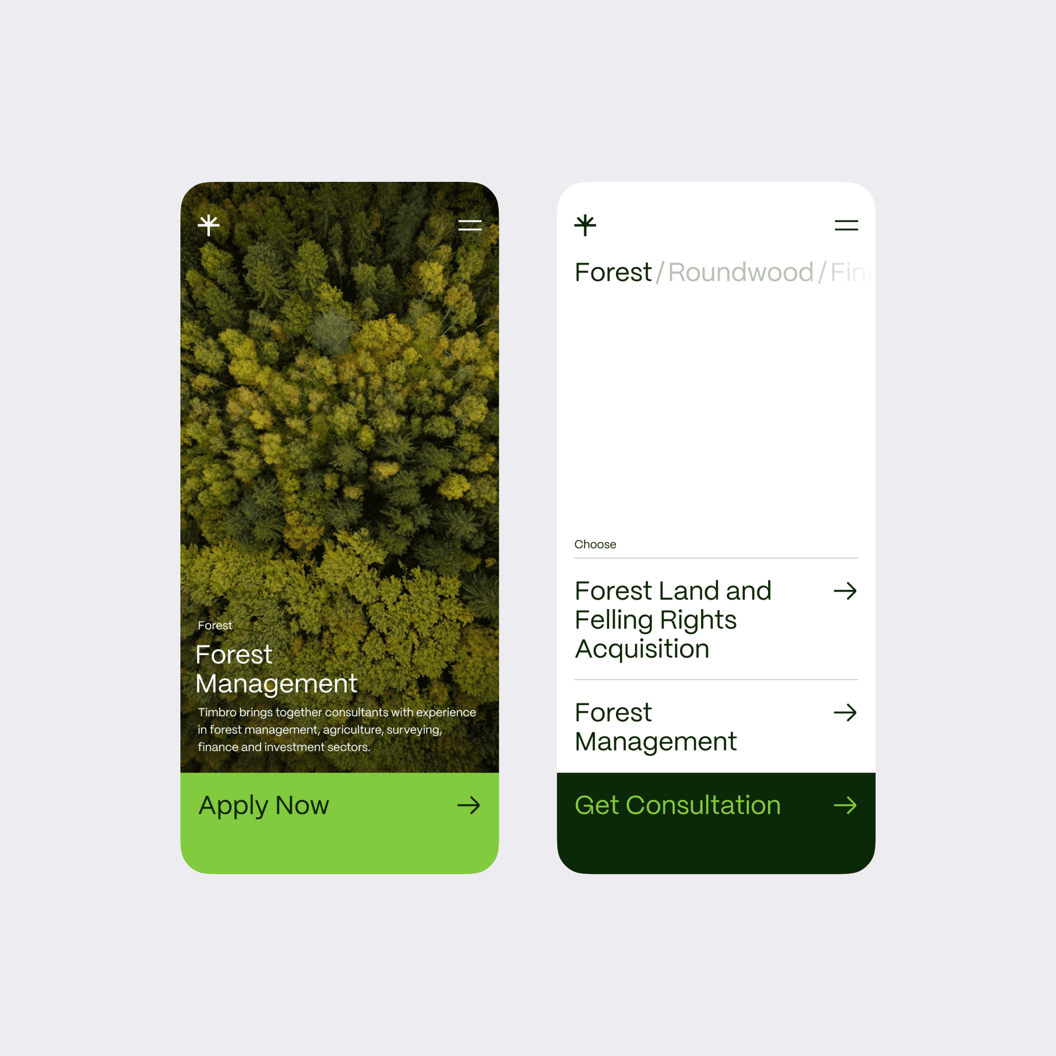 Timbro is a forestry tech company from Latvia that helps forest and land owners understand and grow the value of their land using clear data and digital forest modelling, and our task was to turn that into a modern, neutral identity that still feels close to nature rather than cold and overly techy.